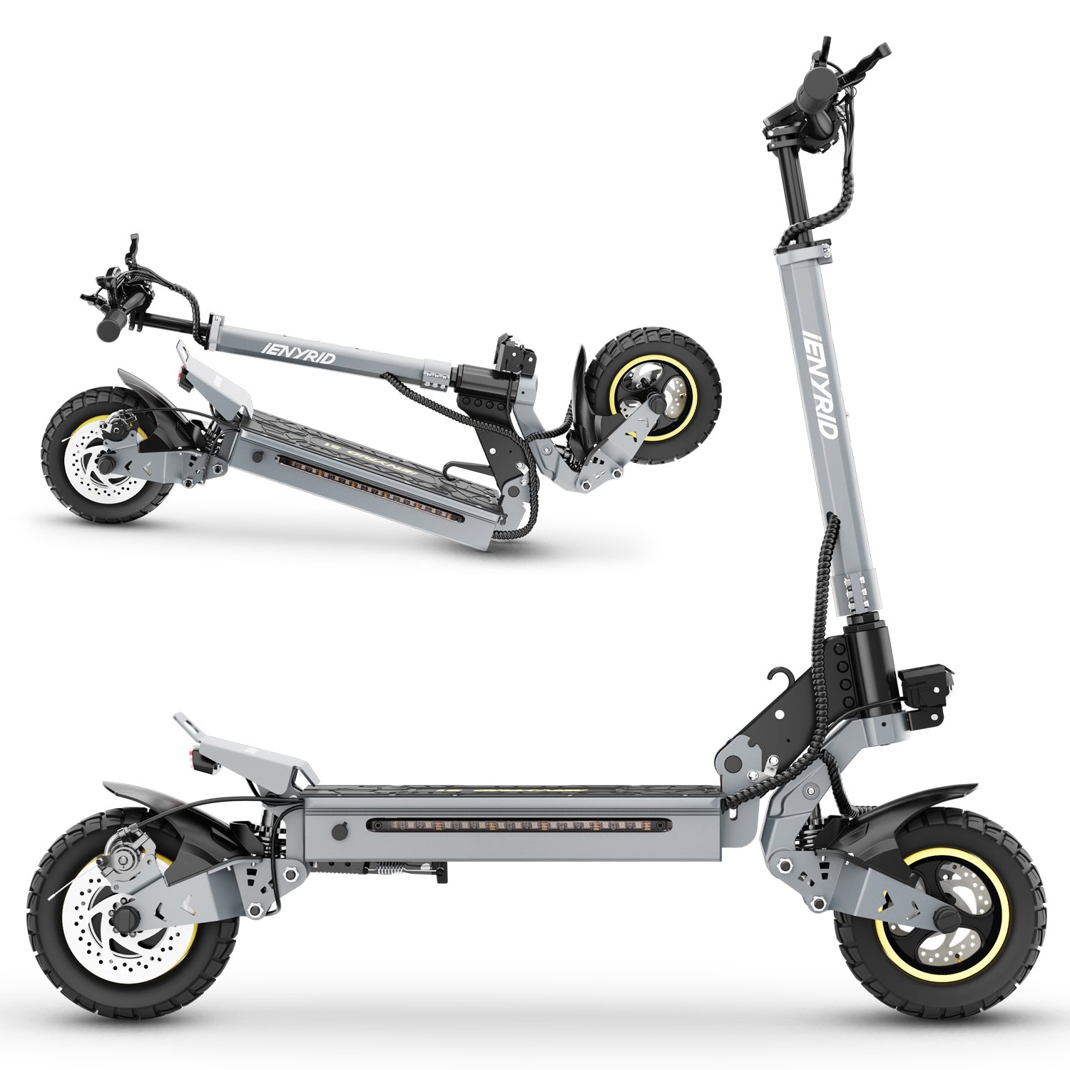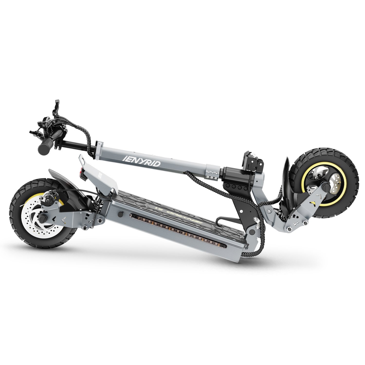 Een van de meest praktische kenmerken van de iENYRID S1 is het vouwbare ontwerp. Met een nettogewicht van 25,7 kg en een brutogewicht van 29,5 kg, is deze step gemakkelijk op te vouwen en mee te nemen. Of je nu de bus of trein neemt, of gewoon thuis een plek wilt vinden om hem op te bergen, de iENYRID S1 is eenvoudig te transporteren en op te bergen.